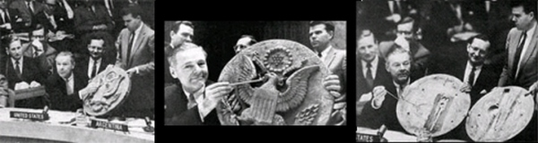 Столь своеобразного «жучка» аккуратно встроили в роскошное, сработанное мастерами из ценных пород дерева панно, изображавшее герб США с белоголовым орлом. И при удобном торжественном случае через группу пионеров подарили этот шедевр американскому послу Авереллу Гарриману.