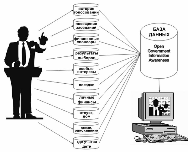 Итак, проект GIA — это комплекс программных средств, образующих для граждан некий инструментальный каркас всеобъемлющей базы данных о деятельности властей. Главный же “изюм” тут в том, что система построена на основе тех же самых идей, что и Total Information Awareness.