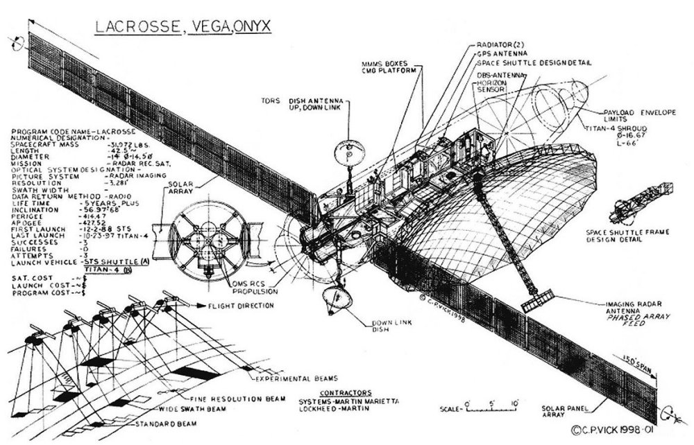 Проходящие над полярными областями Земли орбиты спутников (наклонение 98º) подобраны так, что каждые 1-2 часа над Ираком находится хотя бы один из разведывательных аппаратов, способный делать цифровые снимки территории 100 миль в поперечнике, с разрешением 10-15 см. днем и 60-90 см ночью (с помощью инфракрасных и радарных сенсоров).