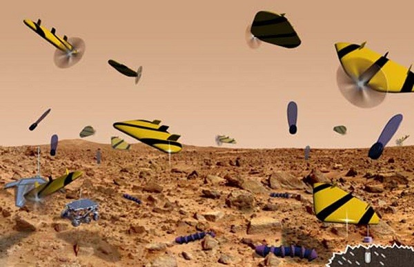 Для исследования среды под поверхностью разрабатываются небольшие роботы-черви. Каждый из подобных аппаратов — будь то в воздухе, на суше или под землей — имеет достаточно несложное устройство, однако в совокупности, как мыслится, роботы будут образовывать нечто вроде пчелиной или муравьиной колонии, совместно решая достаточно сложные задачи.
