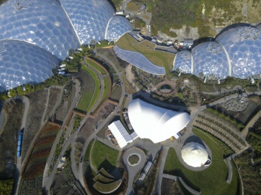 Комплекс «Эдем» расположен на месте бывшего глиняного карьера неподалеку от городка Сент-Остел и сразу привлекает к себе внимание двумя гроздьями гигантских прозрачных куполов, именуемых «биомами» по термину, принятому для обозначения климатических зон жизни.