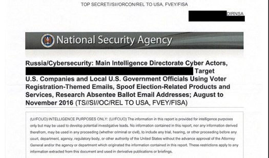 Статья получила название «Подробности из топ-секретного отчета АНБ об активности русских хакеров перед президентскими выборами 2016 года» и была выстроена на основе свежего документа разведслужбы, анонимно присланного кем-то в редакцию. Собственно информация в этом шпионском отчете, что характерно, носила мутный и неясный по своей значимости характер (о чем подробнее чуть позже), куда же более существенными стали события, последовавшие сразу вслед за публикацией.