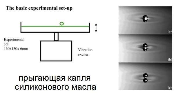 В 2005 году французские физики-экспериментаторы Ив Куде и Эммануэль Фор опубликовали работу с описанием несложного настольного опыта с вибрирующим плоским контейнером, в который налито силиконовое масло, а капля того же масла сколь угодно долго может прыгать на поверхности этой вибрирующей жидкости. Такой феномен прыгающей капли был известен в науке и прежде, однако Куде и Фор исследовали систему более тщательно – и установили поразительные вещи.