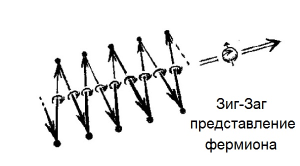 С подачи современного математического физика Роджера Пенроуза, более общий взгляд на тот же феномен получил название «зиг-заг представление фермиона». При взгляде на поясняющую картинку Пенроуза довольно сложно не заметить аналогий с открытым ныне феноменом «прыгающей капли в стратифицированной жидкости».