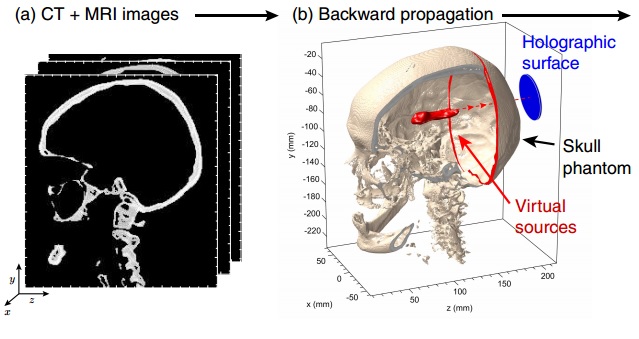 В свежем июльском выпуске журнала Physical Review Applied опубликована статья испанских ученых-физиков из Технического университета Валенсии, посвященная теме такого рода: «Голограммы для фокусировки в мозге ультразвуковых полей любой нужной формы» [Sergio Jimenez-Gambin, Noe Jimenez, Jose Maria Benlloch, and Francisco Camarena, “Holograms to Focus Arbitrary Ultrasonic Fields through the Skull”. Phys. Rev. Applied 12, 014016, Published July 10, 2019].