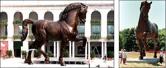 Второй проект, реализованный в 1999 г. в Милане, быть может, и не добавил Леонардо новых лавров, однако восстановил отчасти историческую справедливость, а человечеству подарил самую крупную в мире статую коня. Предыстория же этой затеи была такова.