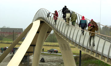 Но вот полтысячи лет спустя, на выставке в Стокгольме в 1996 году проект Леонардо увидел норвежский художник Вебьорн Санд. Он был просто покорен совершенством формы моста и решил непременно продемонстрировать, что хотя конструкция, как и многие другие замыслы Леонардо, явно обгоняла свое время, но была вполне реалистичной.