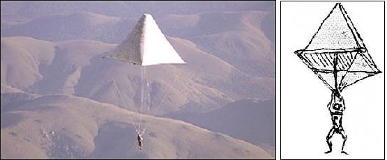 Современные эксперты по аэродинамике, видевшие этот набросок, авторитетно заявляли, что подобная конструкция никогда не будет работать. Однако британский энтузиаст-парашютист Эдриан Николас решил во что бы то ни стало опробовать идею в жизни.