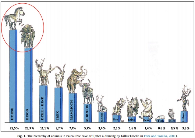 Свыше половины всех тех животных, что изображены на стенах многочисленных пещер, в которых обитали люди палеолита, совершенно определенно приходится на лошадей и бизонов. Столь заметное преобладание всего двух животных было замечено исследователями довольно давно, еще в 1960-е годы, и с той поры известно в науке как «фундаментальная диада» наскальной живописи.