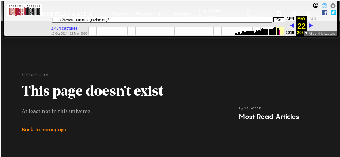 Ровно год тому назад, в мае 2019, странные и загадочные дела начали происходить вокруг веб-сайта Quanta Magazine, освещающего – в научно-популярном жанре и на очень качественном уровне – новости с передовых рубежей физики, математики, биологии, а также всех прочих прилегающих к ним дисциплин, вроде компьютерной науки.