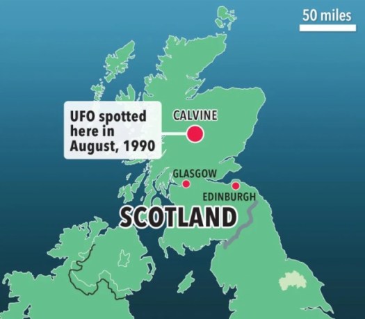 Исследователям достоверно известно, что соответствующее досье на данный счёт, спрятанное в государственных хранилищах, содержит прекрасного качества цветные фотографии – на которых с разных точек в 1990 году был снят крайне необычный и большой, порядка 30 метров в поперечнике, воздушный корабль, парящий невысоко над горами Шотландии.