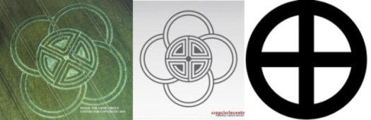 Ну и в-четвёртых, наконец, на заглавной странице старинной книги-расследования про «Бэкона, Шекспира и розенкрейцеров» определённо имеет смысл обратить внимание также и на примечательный символ тайного общества. То есть на крест в круге, с древнейших и ещё дохристианских времён известный под названиями «солнечный крест» или «кельтский крест». Во времена новейшие, уже в XXI веке, по сути тот же самый символ – причём теперь крест не только в круге, но ещё и внутри «розы» из цветочных лепестков – в виде огромной картины «кругов на полях» оказался удобной схемой для изложения новой космической мифологии человечества.