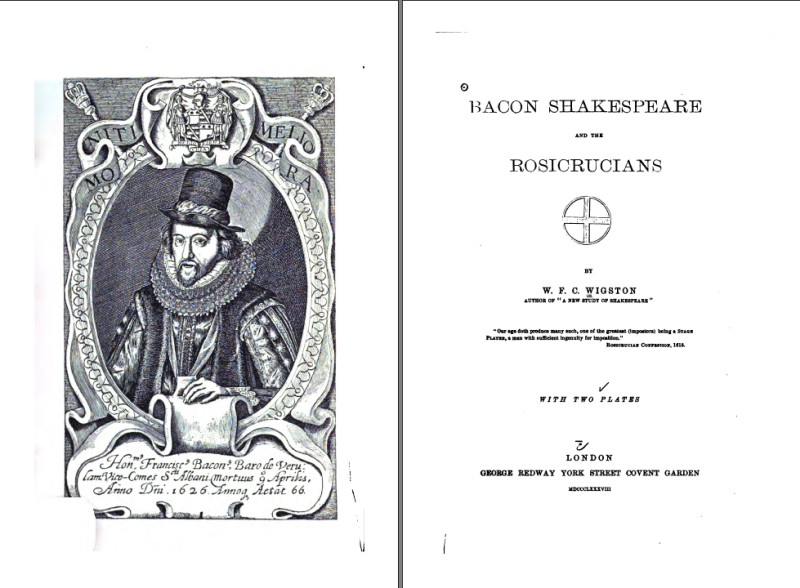 Две наиболее характерные книги этого ряда носят следующие названия: «Бэкон, Шекспир и розенкрейцеры» ; «Фрэнсис Бэкон и его тайное общество» (W.F.C. Wigston, «Bacon, Shakespeare, And The Rosicrucians», London, 1888 ; Constance Mary Pott, «Francis Bacon and his secret society», 1891).
