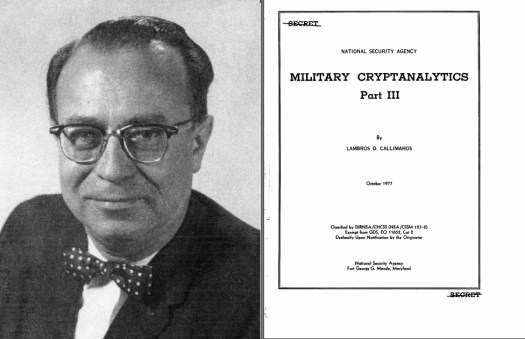 Сначала, 4 января, на сайте Governmentattic, или «Правительственный чердак» по-русски, без всяких комментариев был выложен PDF-файл с наконец-то рассекреченной (и щедро отредактированной цензурой) версией книги Military Cryptanalytics или «Военная криптоаналитика, Часть III» от АНБ США. Среди историков криптографии эта книга известна очень давно, поскольку на протяжении нескольких десятилетий она служила базовым учебником при подготовке кадров АНБ, а автором её был легендарный Ламброс Калимахос, один из ближайших соратников «отца криптологии» Уильяма Фридмана.