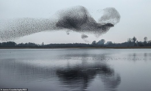 У меня есть приятель, Колин Хогг, который живёт рядом с этим озером, и в прошлом году он рассказал мне, как много там скворцов и сколь замечательные картины они формируют. Скворцы вьют гнёзда в камышах вокруг озера, и каждые четыре-пять дней, ближе к закату, они собираются в огромную стаю. И вот когда такая стая движется, они коллективно выстраивают в полёте разнообразные формы.