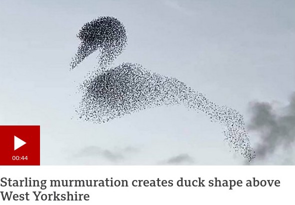У меня есть приятель, Колин Хогг, который живёт рядом с этим озером, и в прошлом году он рассказал мне, как много там скворцов и сколь замечательные картины они формируют. Скворцы вьют гнёзда в камышах вокруг озера, и каждые четыре-пять дней, ближе к закату, они собираются в огромную стаю. И вот когда такая стая движется, они коллективно выстраивают в полёте разнообразные формы.