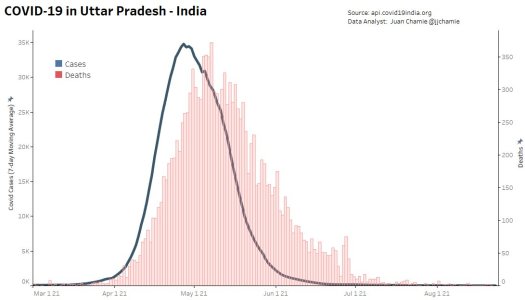 Хотя к подобным цифрам статистики всегда следует относиться с осторожностью, никто не решается оспаривать, что с тех пор, как в марте 2021 в стране началась последняя волна заражения, ни один штат не сдерживал вирус столь же эффективно, как Уттар-Прадеш, самый густонаселённый регион Индии с населением свыше двухсот миллионов человек.