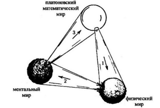 Пенроуз называет этот комплекс «три мира или три формы существования»: форма физического существования, форма ментального существования и форма математического существования (платоновский мир идей). Понятно, что все эти формы тесно друг с другом связаны, причём соответствующие связи настолько же фундаментальны, насколько и загадочны.