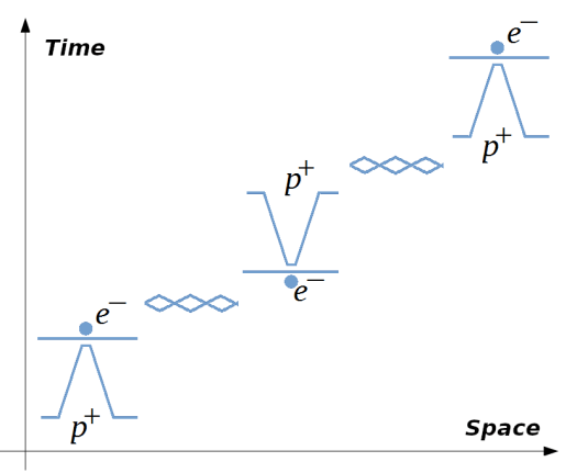 В реальной конструкции, обеспечивающей раздвоение природы, листы браны и антибраны постоянно сходятся и расходятся, никак не разрушая стабильность спаренной квазичастицы протон-электрон. Наглядную схему того, как подобный трюк может быть реализован в природе с опорой на взаимный обмен местами, обнаружили исследователи, занимающиеся поисками фермиона Майораны. [i5]