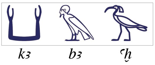 Три важнейших компонента души человеческой у египтян именовались Ка, Ба и Ах. А соответствующие им символы-иероглифы в письменности отображались так.