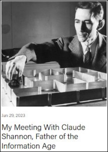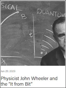 «Физик Джон Уилер и [его идея] It from Bit» . Текст на основе беседы с Уилером в начале 1990-х, в процессе подготовки Хорганом его знаменитой ныне книги «Конец науки». О тесных и замысловатых связях между наукой Шеннона и наукой Уилера с подробностями рассказывает текст киви-архива «Он занимался хакингом реальности»