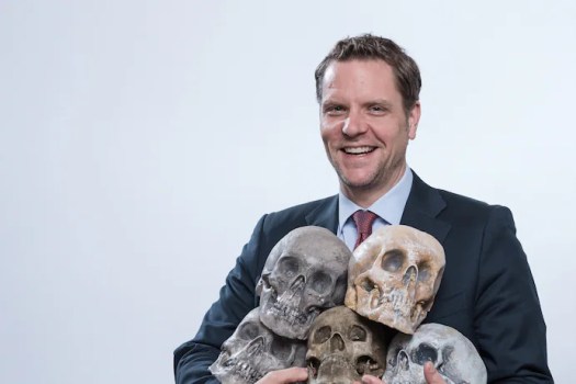 Газетная статья, сообщившая о грядущем обновлении директорского поста, оформлена необычной фотографией Уитмора с кучей бутафорских человеческих черепов в руках. И завершается такой любопытной фразой: