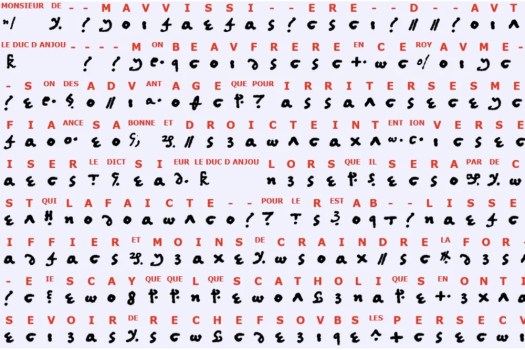 Для всех неведомые, в архиве BNF хранились зашифрованные письма Марии Стюарт, королевы Шотландской и матери Якова I, будущего короля Англии и Шотландии, объединённых под его короной. Причём писем таких оказалось много – после дополнительных розысков свыше полусотни и общим объёмом около 50 000 слов. Иначе говоря, целый том неизвестных прежде документов из личной секретной переписки Марии Стюарт в период 1578-84 гг, когда она находилась в плену у английской королевы Елизаветы и за несколько лет до её казни по обвинению в заговоре.