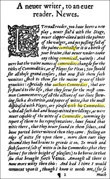 Ибо шекспироведам прекрасно известно, что в книге с первой публикацией «Троила и Крессиды» в 1609 году (при жизни Шекспира) имелось такое предисловие: