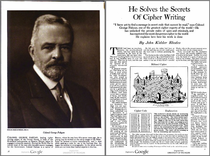В январском, 1925-го года выпуске The American Magazine, имевшем репутацию издания серьёзных журналистских расследований, была опубликована статья, целиком посвящённая Фабиану и озаглавленная так: «Он разгадывает тайны зашифрованного письма» [o7].