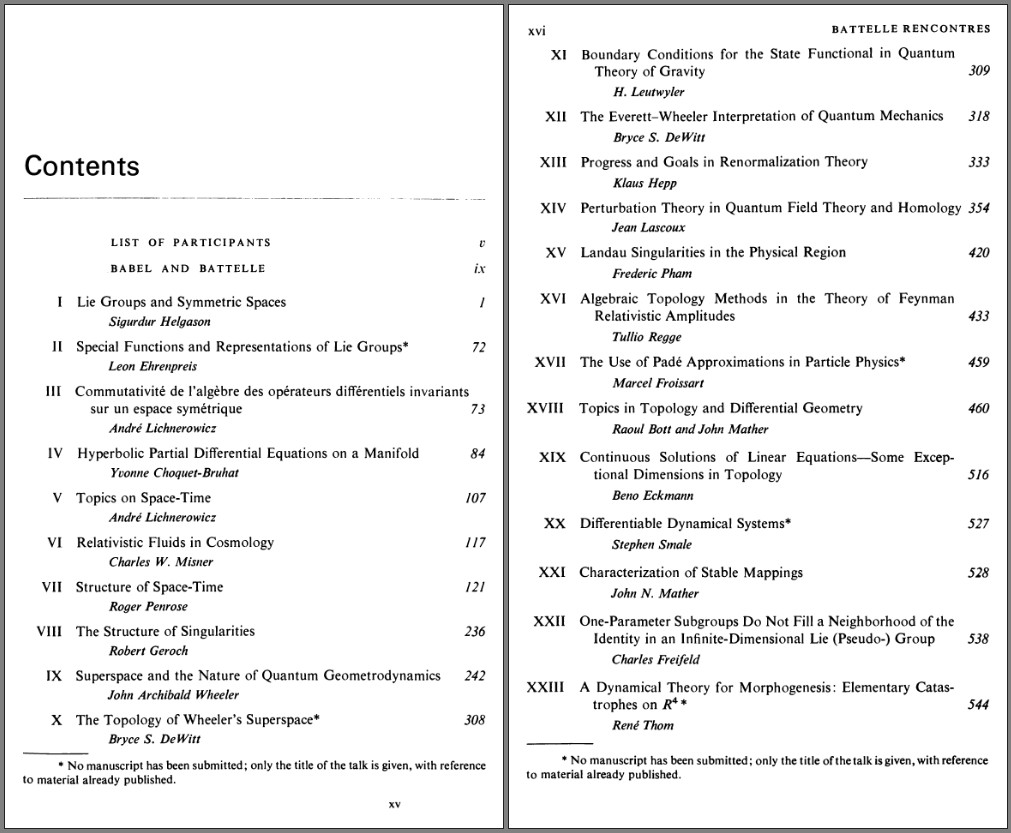 [o13] Battelle Rencontres — 1967 Lectures in Mathematics and Physics (Ed. by Cécile M. DeWitt and John A. Wheeler). New York — Amsterdam 1968. W.A. Benjamin