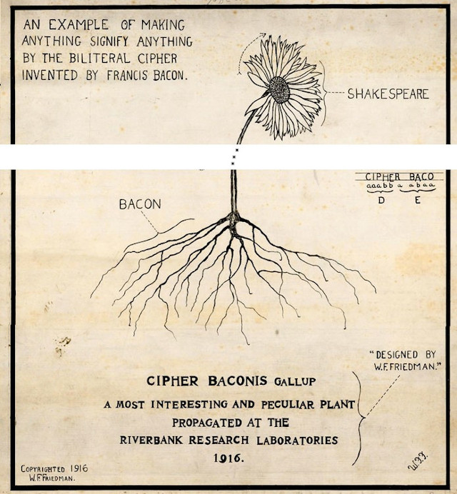 Пример этот особо хорош по той причине, что один из видных участников шекспировского гранд-обмана, «отец современной криптологии» Уильям Фридман, оставил на данный счёт очень важные документальные улики. Своего рода личные свидетельства, предоставляющие правду всем, кто хотел бы её знать.