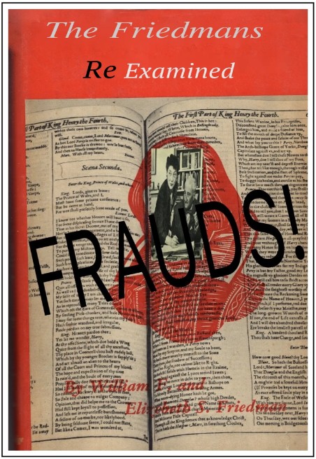 Совместную же работу супругов Фридманов в шекспироведении принято почитать как «последнее и окончательное слово» в дебатах о криптографических доказательствах в Бэкон-Шекспировских спорах. Ибо, по авторитетному и категоричному заключению этих специалистов, в печатных изданиях шекспировской эпохи вообще нет никаких зашифрованных посланий в принципе. Так что и обсуждать здесь всерьёз по сути нечего…