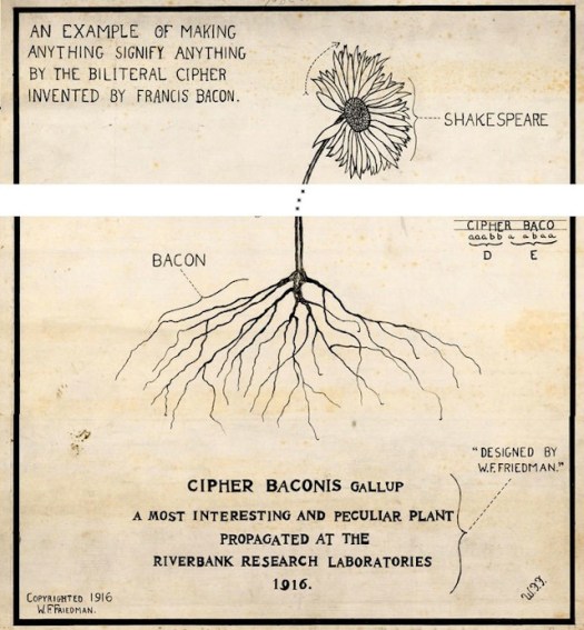 Пример этот особо хорош по той причине, что один из видных участников шекспировского гранд-обмана, «отец современной криптологии» Уильям Фридман, оставил на данный счёт очень важные документальные улики. Своего рода личные свидетельства, предоставляющие правду всем, кто хотел бы её знать.